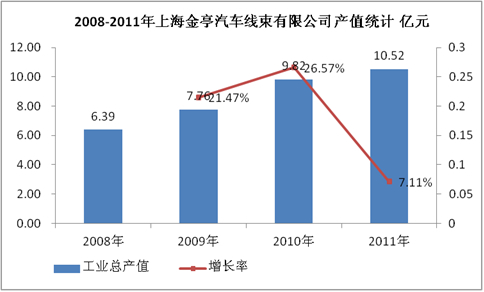 图表 1:2008-2011年上海金亭汽车线束有限公司产值统计 亿元
