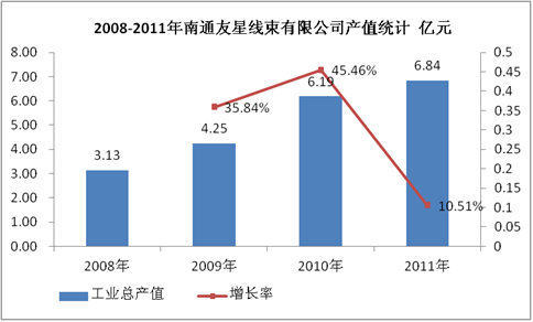 图表 3:2008-2011年南通友星线束有限公司产值统计 亿元