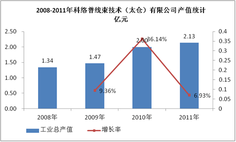 图表 7:2008-2011年科络普线束技术(太仓)有限公司产值统计 亿元