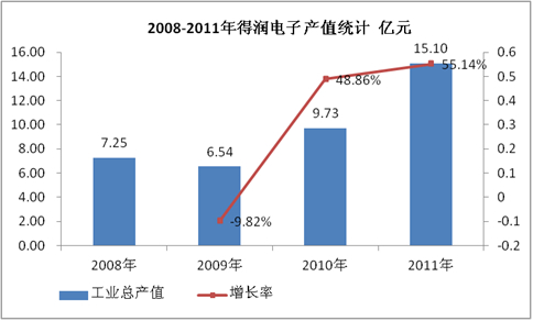 图表 10:2008-2011年得润电子产值统计 亿元