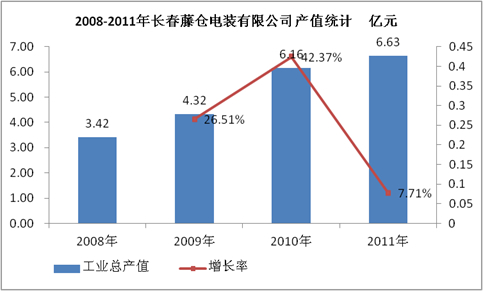 图表 13:2008-2011年长春藤仓电装有限公司产值统计 亿元