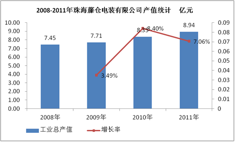 图表 11:2008-2011年珠海藤仓电装有限公司产值统计 亿元