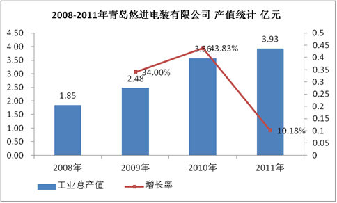 图表 14:2008-2011年青岛悠进电装有限公司产值统计 亿元