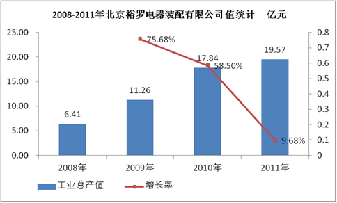 图表 16:2008-2011年北京裕罗电器装配有限公司产值统计 亿元