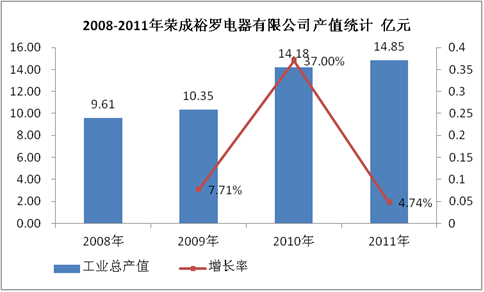 图表 21:2008-201年荣成裕罗电器有限公司产值统计 亿元