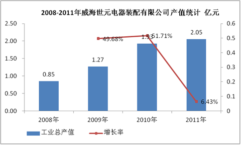 图表 19:2008-2011年威海世元电器装配有限公司产值统计 亿元