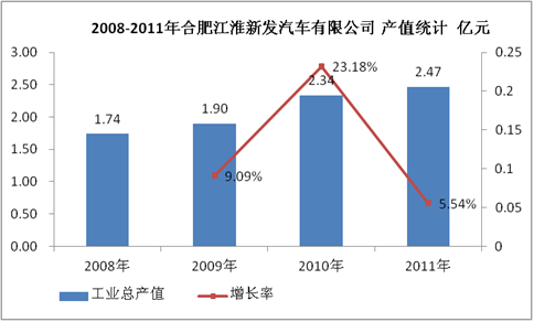 图表 22:2008-2011年合肥江淮新发汽车有限公司 产值统计 亿元