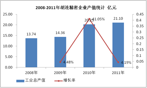 图表 23:2008-2011年胡连精密企业产值统计 亿元