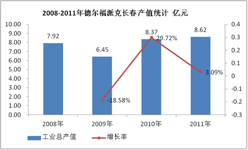 图表 1:2008-2011年德尔福派克长春产值统计 亿元