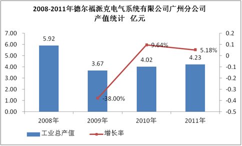 图表 4:2008-2011年德尔福派克电气系统有限公司广州分公司产值统计 亿元