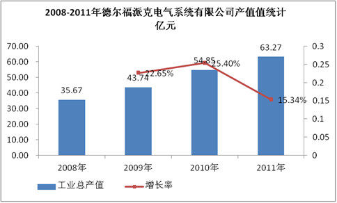 图表 7:2008-2011年德尔福派克电气系统有限公司产值统计 亿元